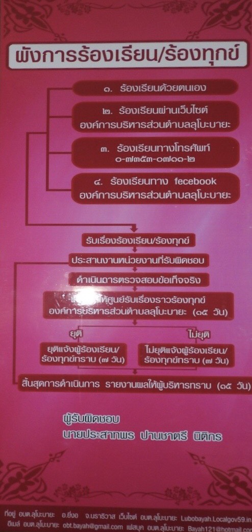 ขั้นตอนการให้บริการ ฟังการร้องเรียน/ร้องทุกข์