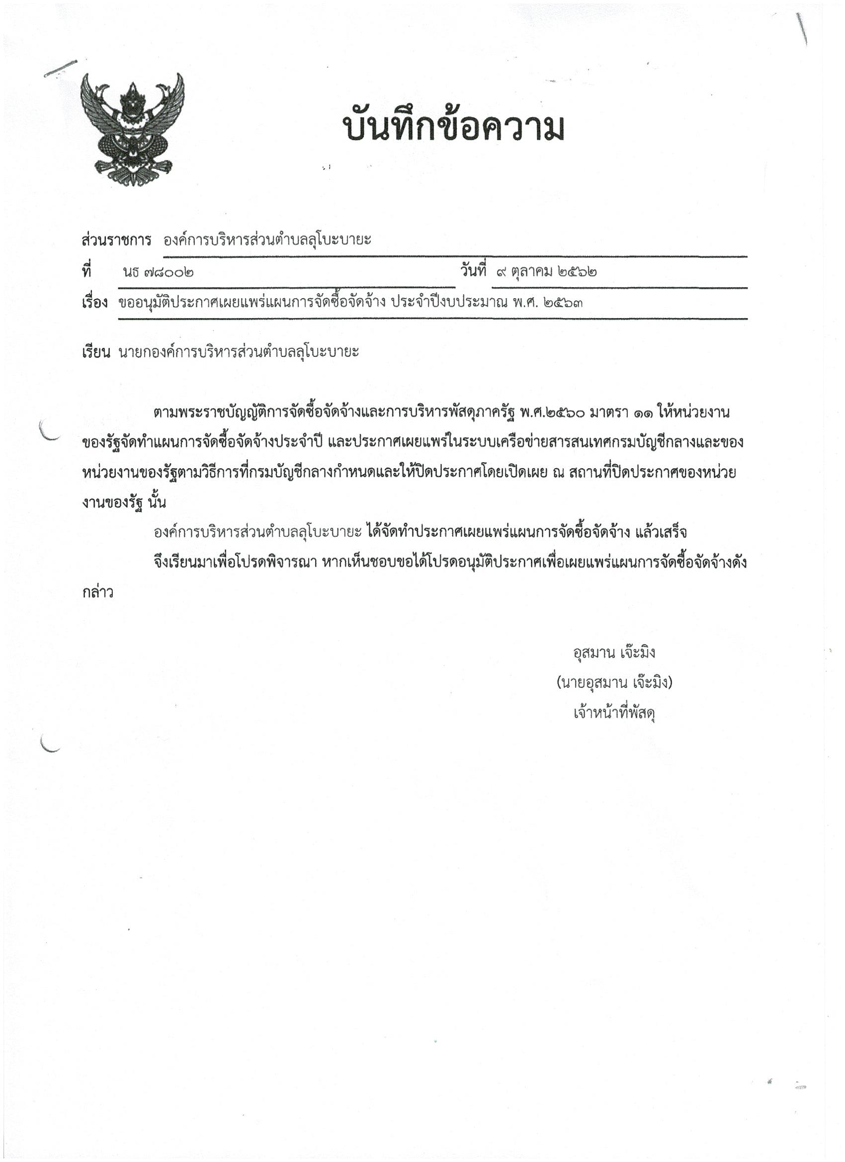 ประกาศเผยแพร่แผนการจัดซื้อจัดจ้าง ประจำปีงบประมาณ พ.ศ.2563