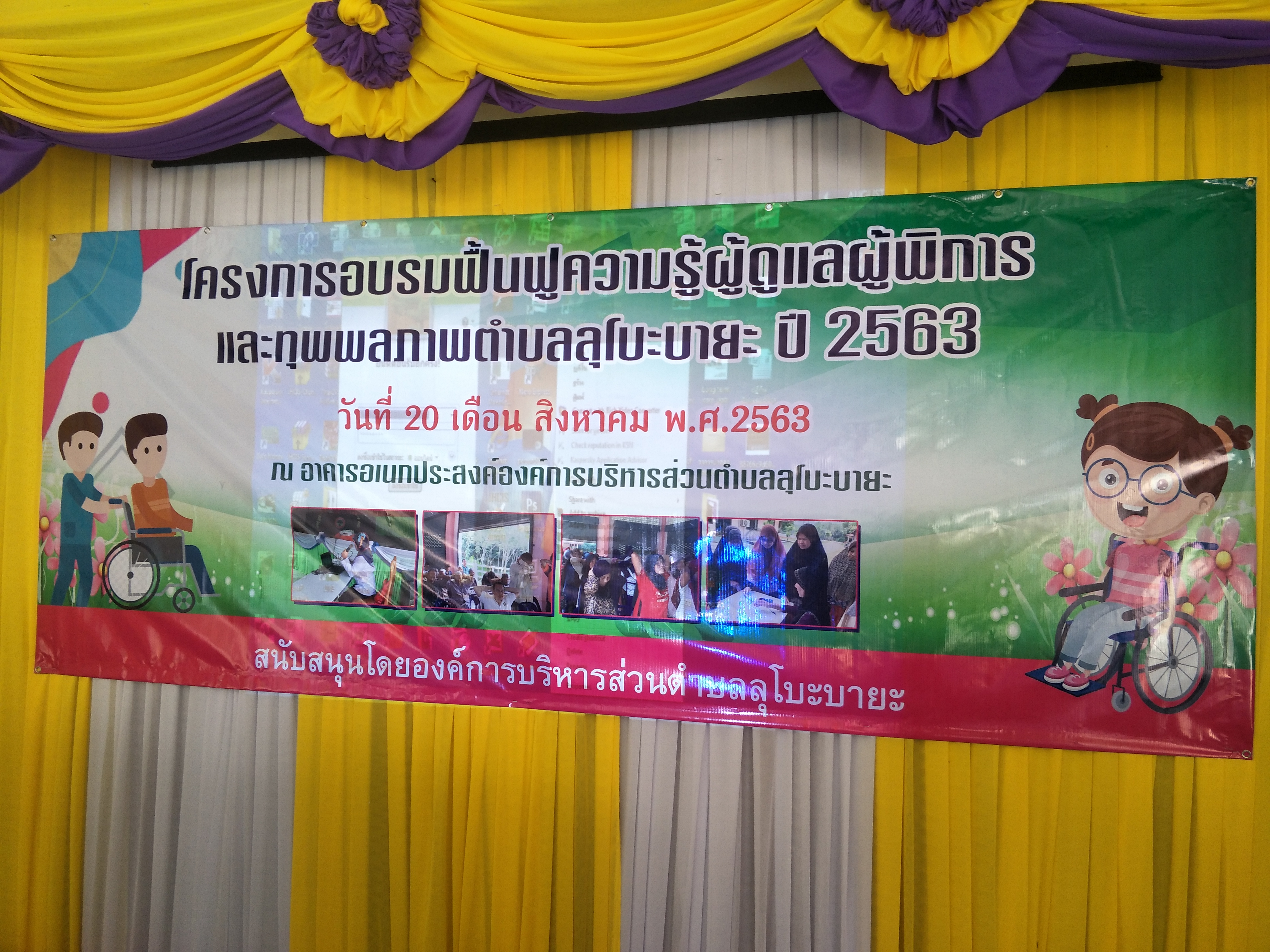 โครงการอบรมฟื่นฟูความรู้ผู้ดูแลผู้พิการและทุพพลภาพตำบลลุโบะบายะ ปี 2563